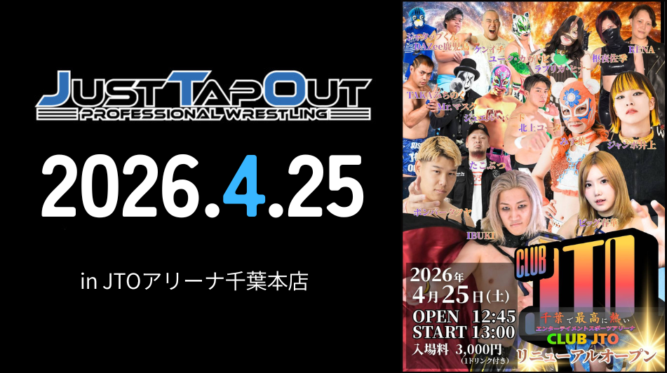 大会概要 主催JTO日程2026年4月25日(土)時間開場13:45・開始14:00場所千葉県・JTOアリーナ千葉本店その他- チケットのご購入はこちら 決定分対戦カード 参戦選手プロフィールはこちら JTO選手プロフィール一覧へ