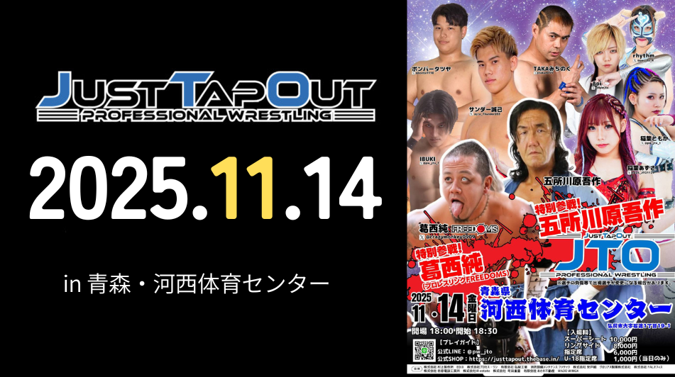 大会概要 主催JTO日程2025年11月14日(金)時間開場18:00・開始18:30場所青森県・河西体育センターその他- チケットのご購入はこちら 決定分対戦カード 参戦選手プロフィールはこちら JTO選手プロフィール一覧へ
