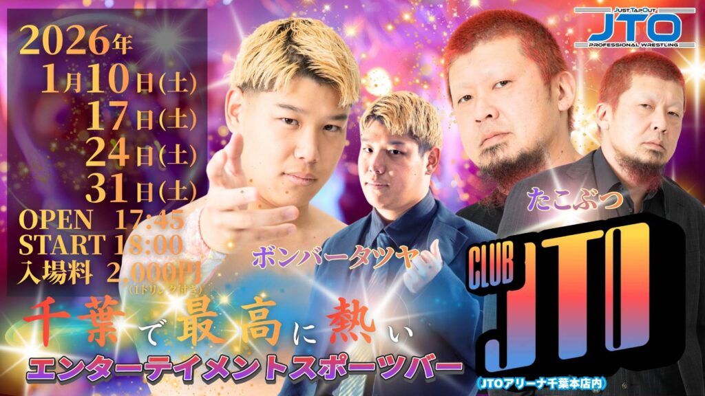大会概要 主催JTO日程2026年1月10日(土)時間開場17:45・開始18:00場所千葉県・JTOアリーナ千葉本店その他- チケットのご購入はこちら 決定分対戦カード 参戦選手プロフィールはこちら JTO選手プロフィール一覧へ