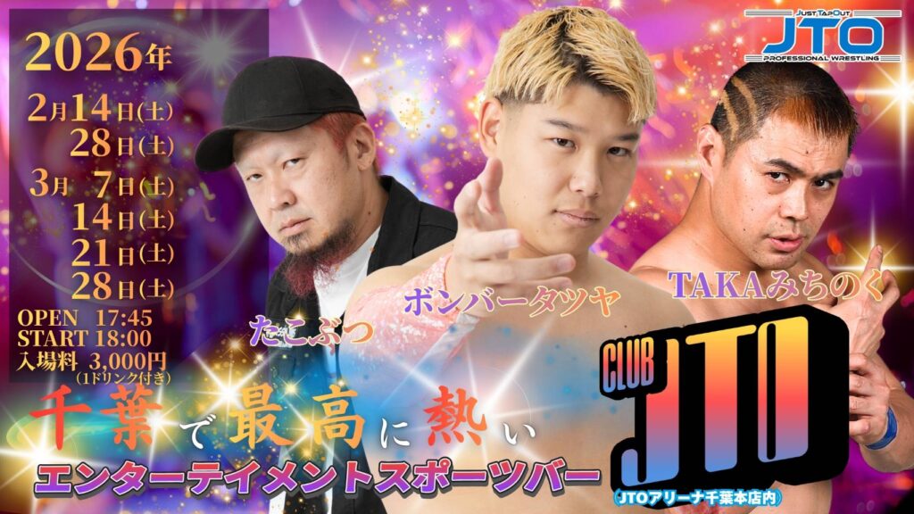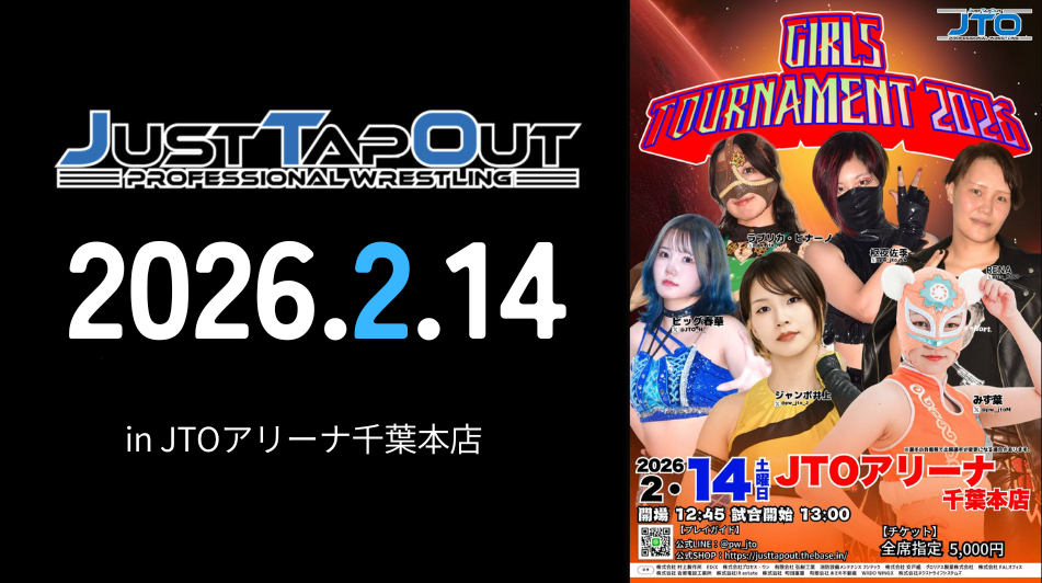 大会概要 主催JTO日程2026年2月15日(日)時間開場17:00・開始17:30場所埼玉県・レッスル武闘館(アイスリボン道場)その他チケットのお取り置きはrhythm公式LINEにて受付中 チケットのご購入はこちら 決定分対戦カード 参戦選手プロフィールはこちら JTO... -