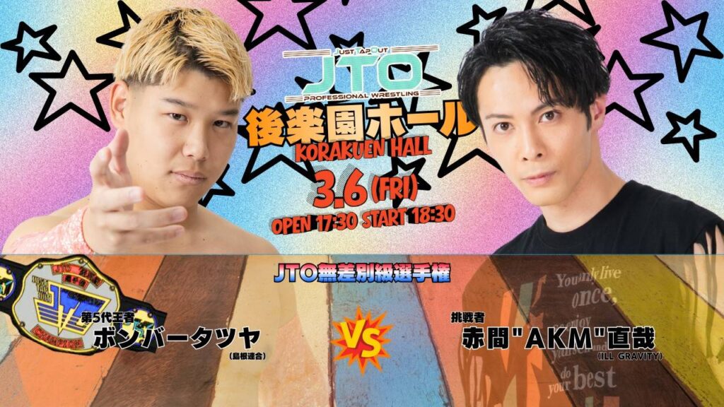 ※試合結果により、ボンバータツヤが第5代JTO無差別級選手権の防衛に成功