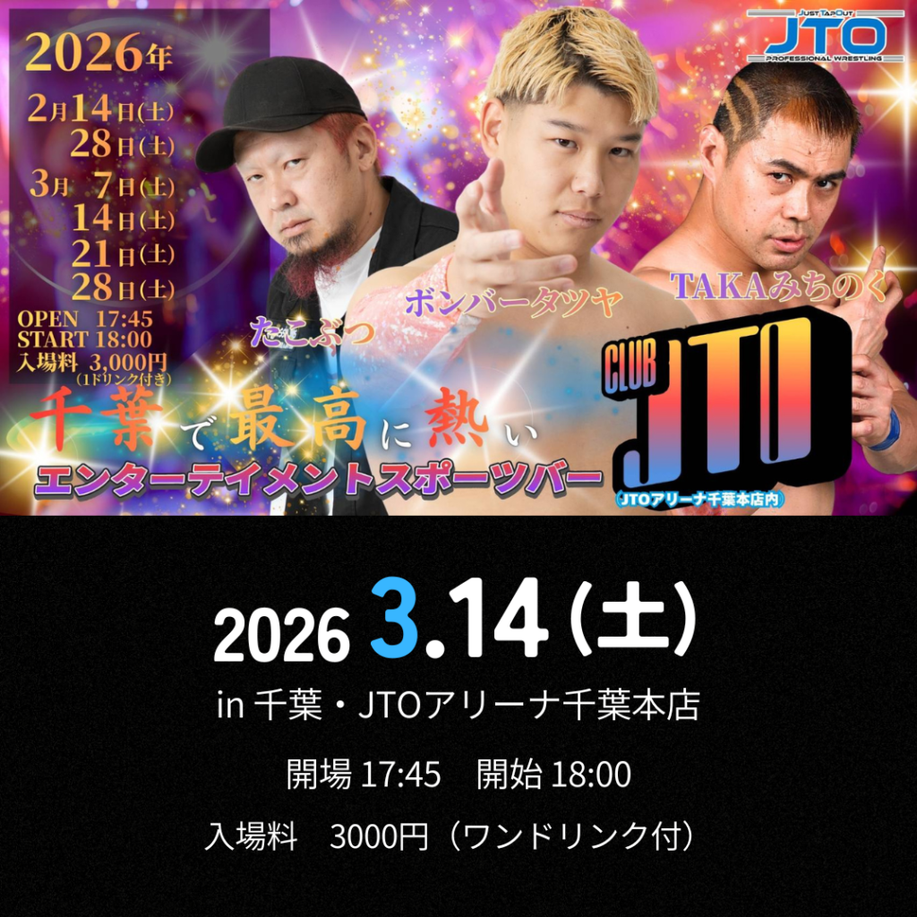 大会概要 主催JTO日程2026年3月14日(土)時間開場17:45・開始18:00場所千葉県・JTOアリーナ千葉本店その他– チケットのご購入はこちら 決定分対戦カード 参戦選手プロフィールはこちら JTO選手プロフィール一覧へ スケジュール/チケット URLをコピーしました!