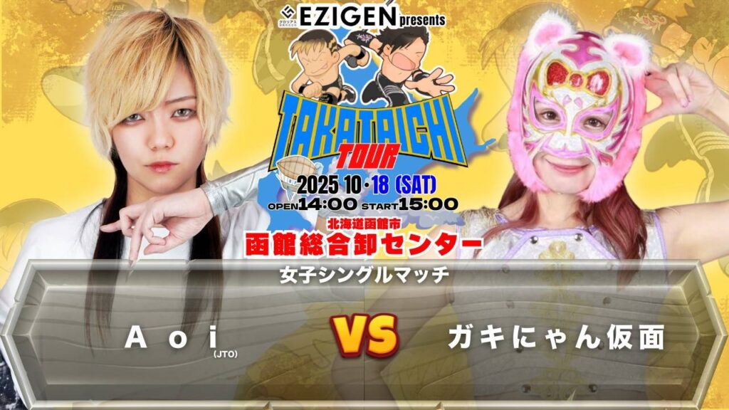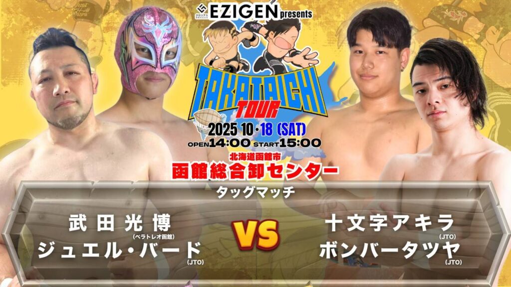 大会概要 主催タカタイチマニア実行委員会日程2025年10月18日(土)時間開場14:00・開始15:00場所北海道・函館総合卸センターその他9月7日よりローソンチケットで販売開始 チケットのご購入はこちら 決定分対戦カード 参戦選手プロフィールはこちら JTO選手プロフィール一覧へ スケジュール/チケット URLをコピーしました!