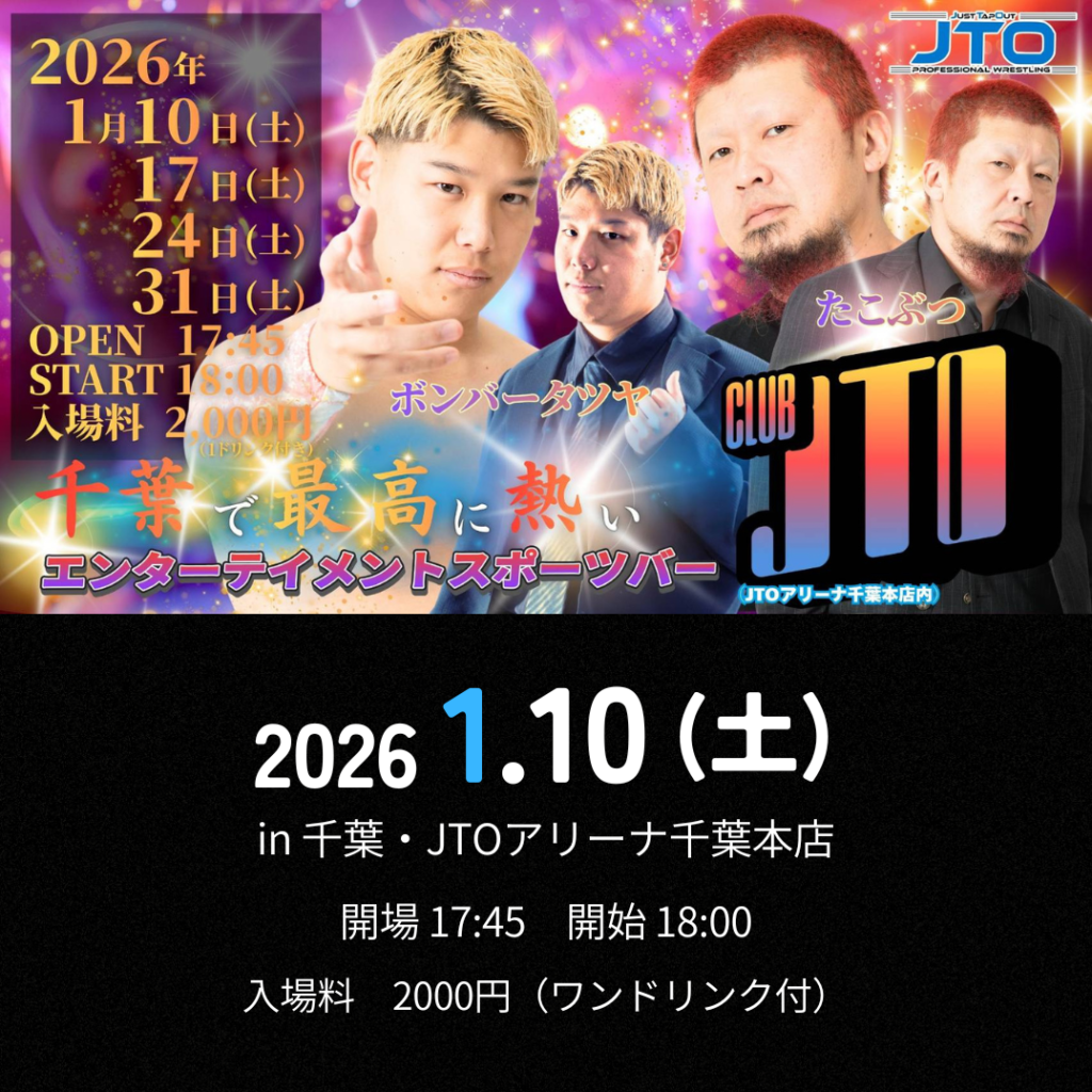 大会概要 主催JTO日程2026年1月10日(土)時間開場17:45・開始18:00場所千葉県・JTOアリーナ千葉本店その他– チケットのご購入はこちら 決定分対戦カード 参戦選手プロフィールはこちら JTO選手プロフィール一覧へ スケジュール/チケット URLをコピーしました!