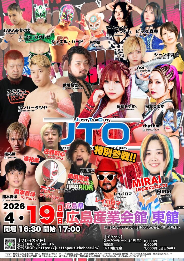 大会概要 主催JTO日程2026年4月19日(日)時間開場 16:30・開始 17:00場所広島県・広島産業会館 東館その他– チケットのご購入はこちら 決定分対戦カード 参戦選手プロフィールはこちら JTO選手プロフィール一覧へ スケジュール/チケット URLをコピーしました!