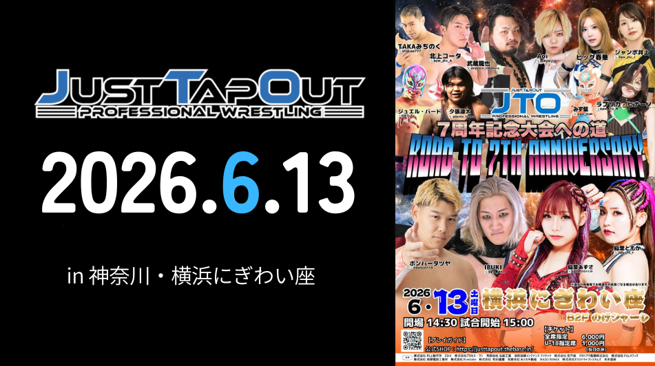 大会名:JTO年内最終戦TOKYO SQUARE in Itabashi 開催日2025年12月28日(日)会場東京都・TOKYO SQUARE in Itabashi開場12:30開始13:00観衆146人(満員札止め) 【第1試合 】 女子タッグマッチ 15分1本勝負 ※対戦カード変更 みず葉×ラブリカ・ヒナーノ7分1... -